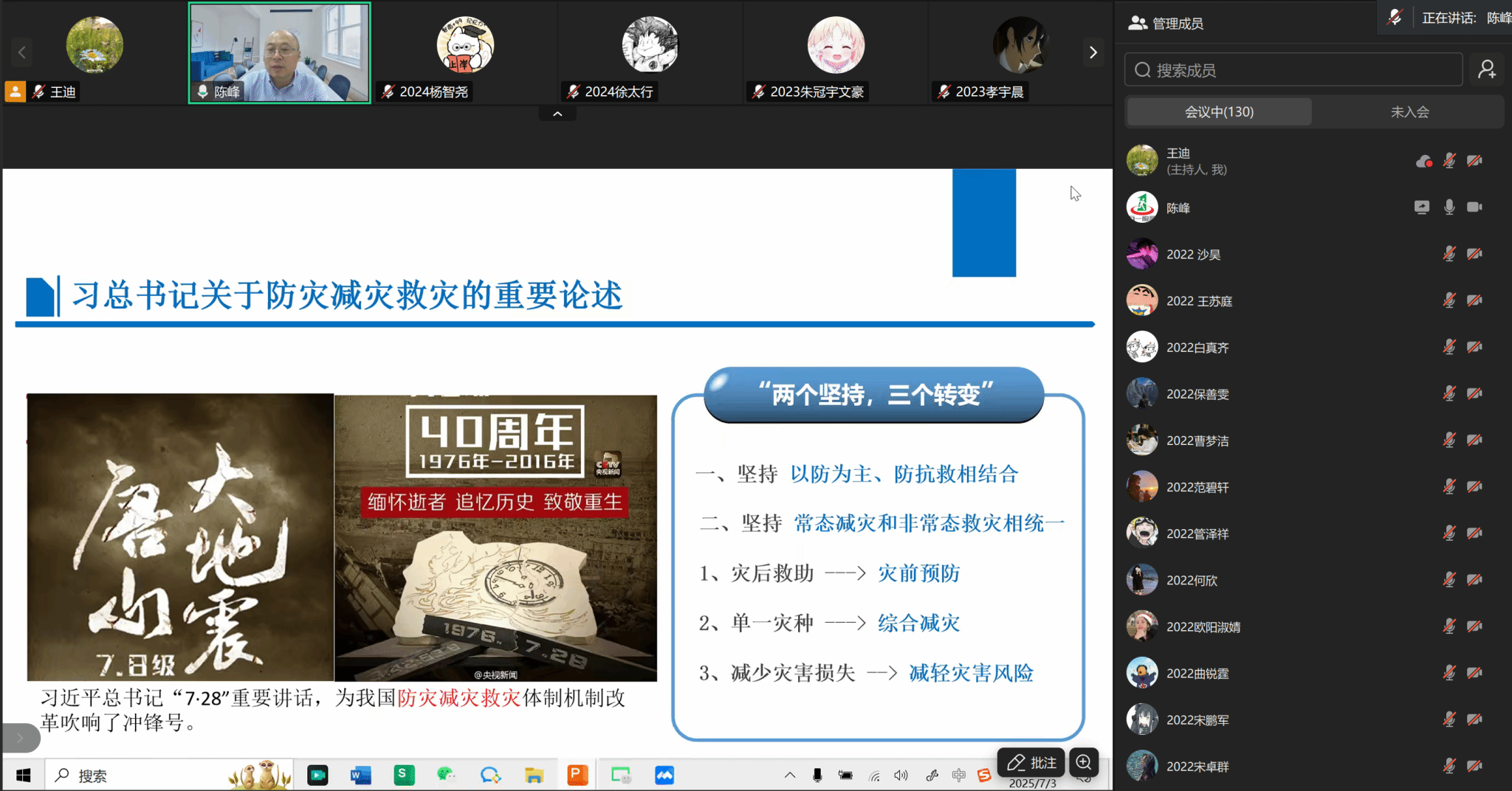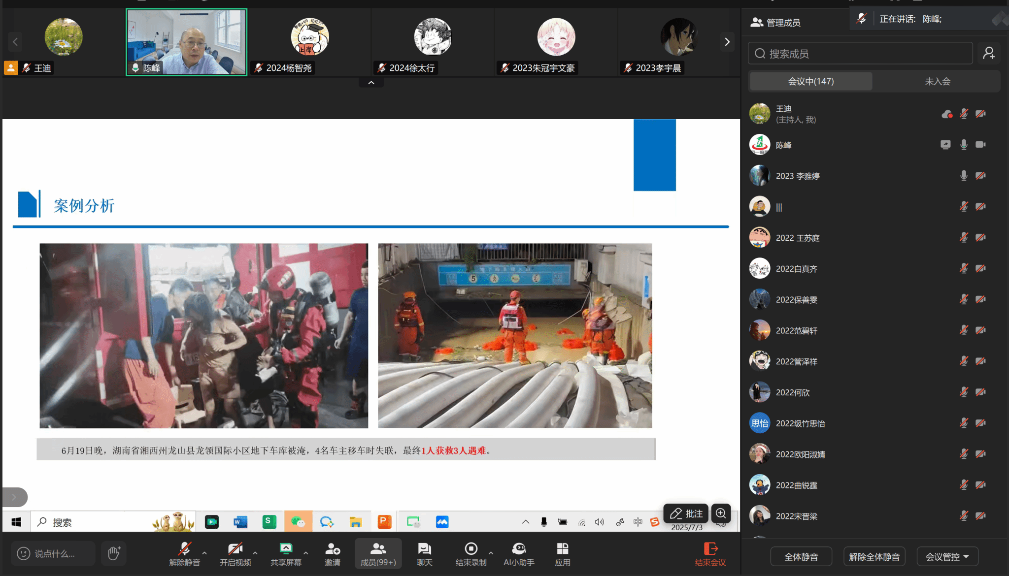 7月3日,学院特邀上海万一安全科技有限公司总经理陈峰为应急管理专业学生带来专业实践讲座《基层防汛应急管理》。防汛救灾关系到人民群众的生命财产安全,更关系到社会的稳定与发展。基层作为防汛应急响应的“第一公里”和“最后一公里”,应急能力提升至关重要。陈峰总经理的讲座内容覆盖国家战略和基层实践,从习近平总书记多次强调的获得感、幸福感、安全感切入,深刻阐述了做好基层防汛应急管理工作对于保障人民生命财产安全、维护社会大局稳定的重要性,介绍了“三个转变”的内涵与意义以及防汛防台“六有”建设的具体要求,并且深入讲解了基层应对突发事件时存在的人财物短缺、协调机制不畅、专业能力不足等现实难点,以及国家层面以提升基层应急能力为目标,大力推进基层减负的政策方向。