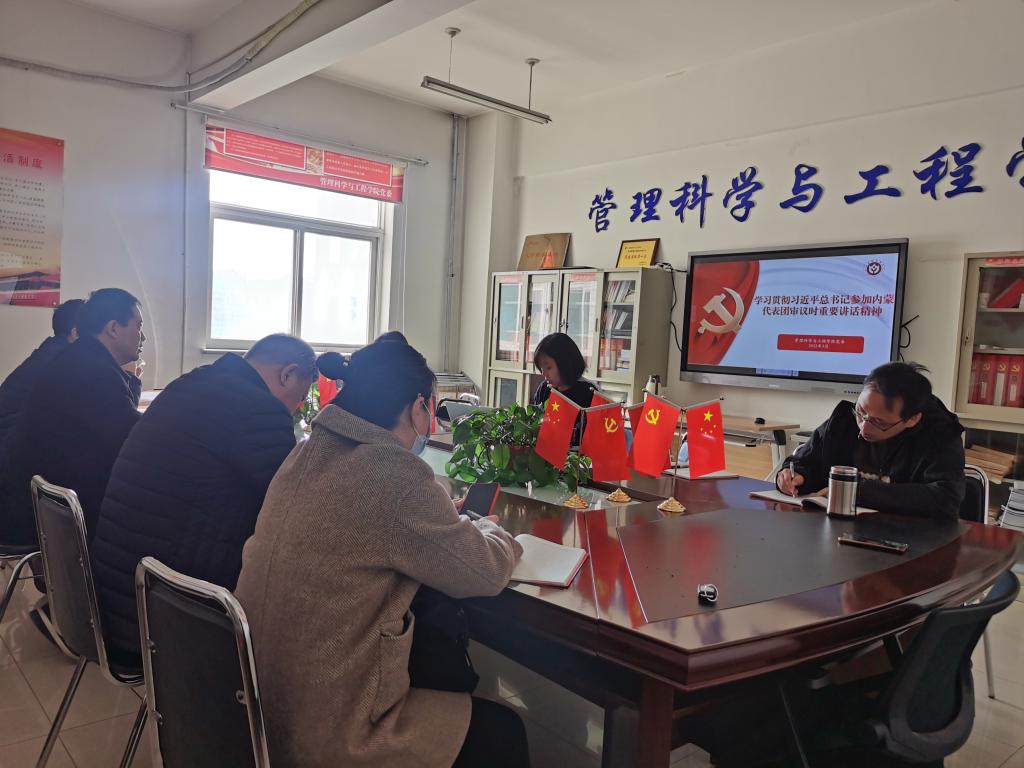 在学院支部会议室组织召开党委理论学习中心组学习会议,学习贯彻习近平总书记在参加十三届全国人大五次会议内蒙古代表团审议时发表重要讲话。全体党委理论学习中心组成员参加会议。学院党委书记主持会议。