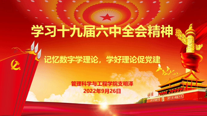 学院党委书记通过记忆数字向团员青年们介绍了“一个号召”“马克思主义中国化的三次飞跃”“四个历史时期,四个伟大飞跃”“五个方面总结”“十个明确”“十个坚持总结”“十三个方面总结”等重要内容,通过讲解,使大家用数字的方式更易掌握了解党的理论知识。