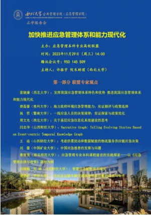 2023年11月29日,由应急管理本科专业高校联盟主办,西北大学公共管理学院(应急管理学院)承办的“加快推进应急管理体系和能力现代化”集体讨论会成功召开,本次会议采用腾讯会议方式,会议报告分为联盟专家组和西北大学研究生组两个部分。绅士仓库