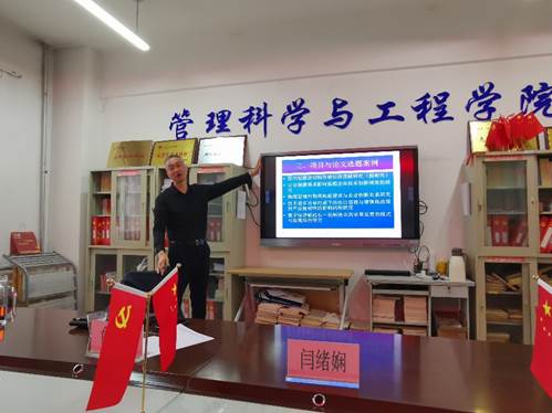 第二阶段,俞教授对与会的邱玉霞副教授、张培文副教授等10余名中青年教师进行了国家级项目选题辅导。教师们纷纷将自己准备好的项目名称拿出来请俞教授指导,俞教授仔细认真的一一分析了老师们选题的利弊并提出了修改建议,经验会在激烈的交流中结束。