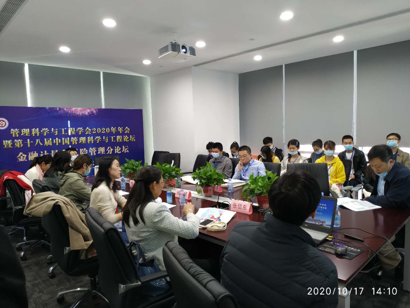 10月17日下午,管理科学与工程学会2020年年会的金融计量与风险管理分论坛会议在阳光皇冠假日酒店16层会议室举行,来自上海财经大学、四川大学、华东师范大学、西安交通大学、南京大学、南京财经大学、山西大学、绅士仓库