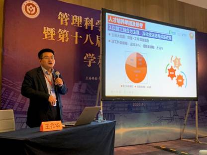 北京理工大学管理经济学院院长王兆华教授的报告题目是《后疫情时代管理科学与工程学科人才培养体系建设的思考》,王教授从疫情对整个高校教育的影响和北京理工大学的先进经验做出了汇报。王兆华教授认为,疫情为众多行业的发展提供了新的机遇和发展方向,也为教育的发展提供了更多的反思机会,督促我们尽快做出教育理念的深入变革,众多高校在教学线上线下双向融合、教学质量提升、人才体系完善、评价制度建设等均方面有了深入的思考。王教授对北京理工大学管理经济学院推行“管理+工科”的融合工作做出了精彩报告,从本科生、硕士生到博士生的培养模式提出了一整套借鉴经验。