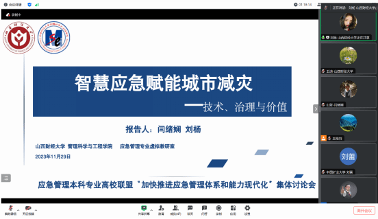 院长闫绪娴教授、应急管理教研室主任王迪、应急管理教研室教师闫志华作为联盟专家组成员,受邀进行学术报告。